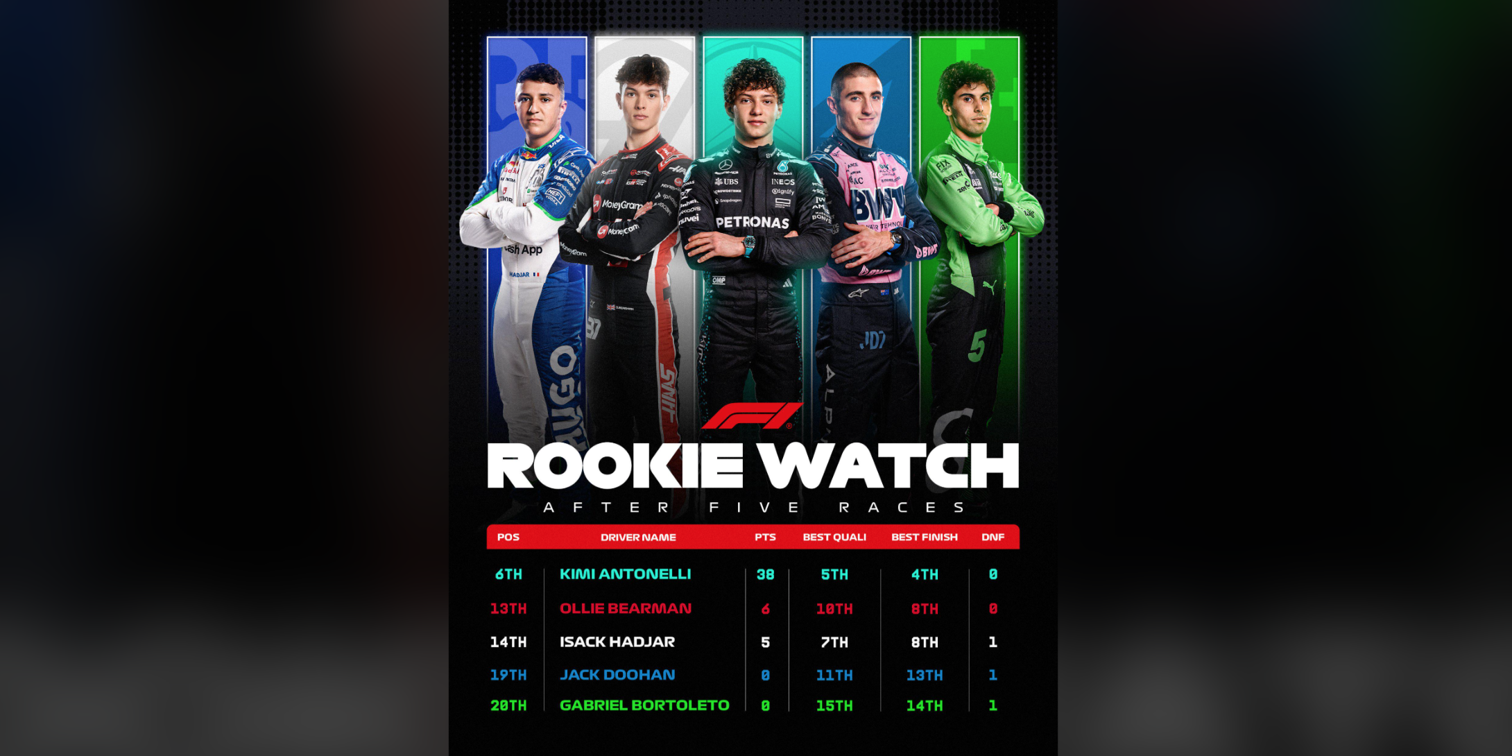 今シーズンは5人ものルーキーがF1グリッドに名を連ねています。メルセデスのキミ・アントネッリ、ハースのオリバー・ベアマン、VCARBのアイザック・ハジャー、ザウバーのガブリエル・ボルトレト、そしてアルピーヌのジャック・ドゥーハンです。F1公式が「5人のルーキーのうち、第5戦終了時点で最も印象に残ったのは誰か?」と問いかけたところ、海外のF1ファンからは様々な意見が寄せられました。果たして、誰が最も高く評価されているのでしょうか?